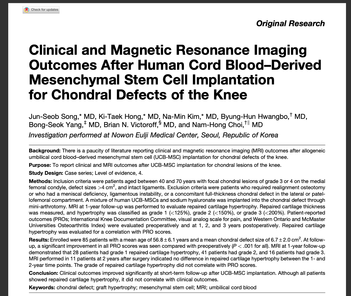CARTISTEM® Stem Cell Cartilage Restoration
